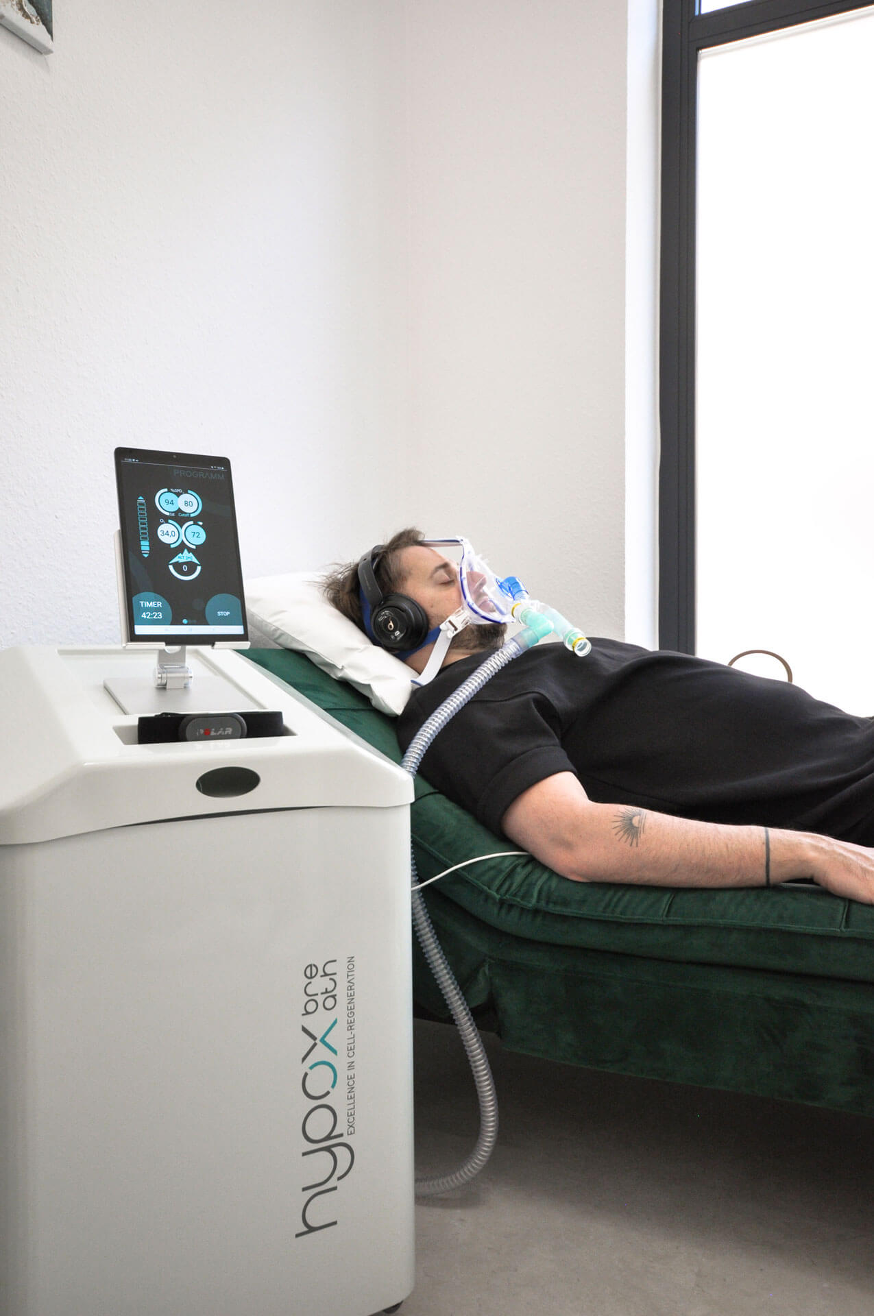 Das hypoxbreath IHHT-System simuliert die Wirkung von Höhentraining in entspannter Liegeposition. Keine körperliche Anstrengung. Nur atmen und die Anpassungsreaktionen der Zellen nutzen.