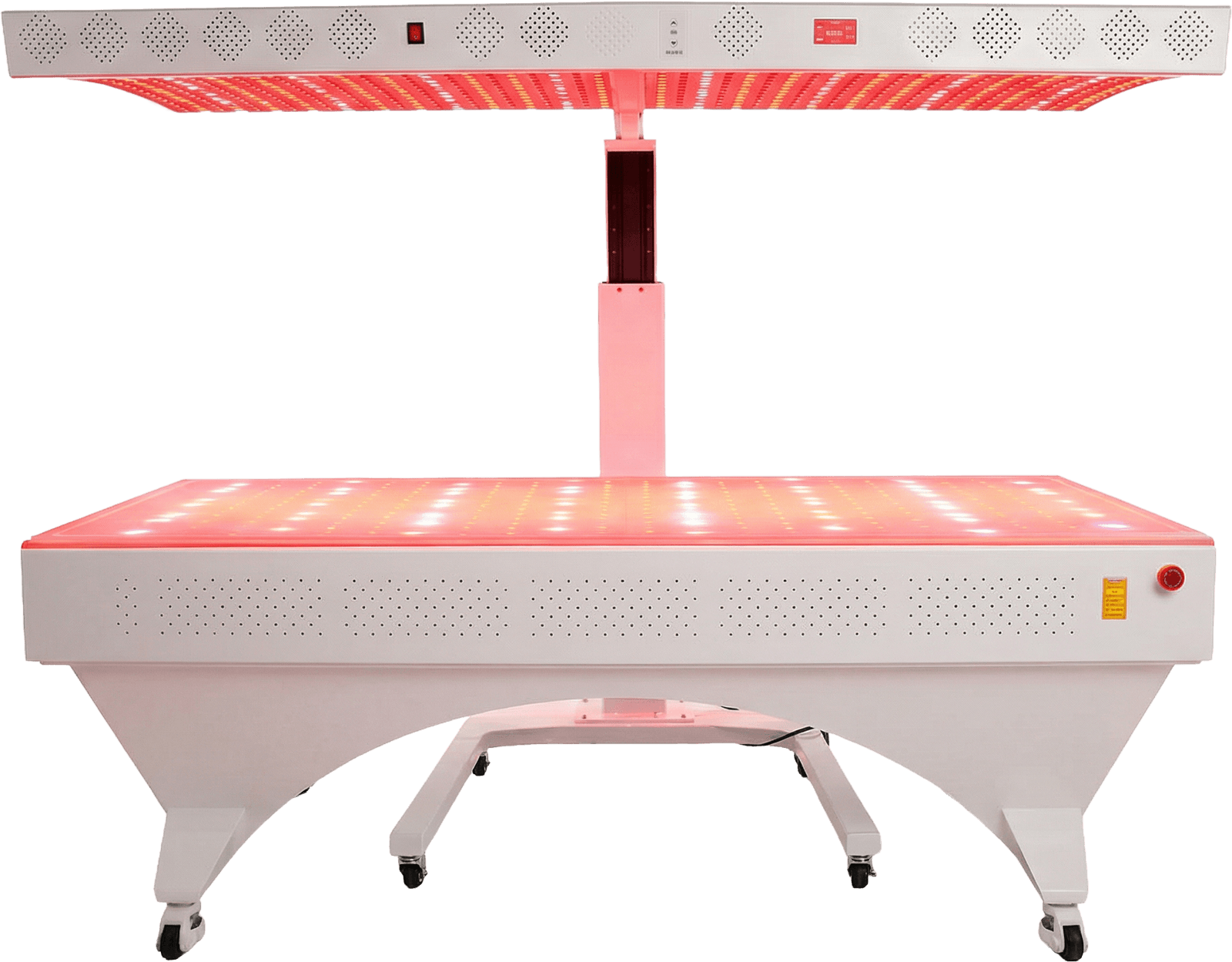 Durch die Kombination aus großflächigen Panels und einer liegenden Anwendungseinheit entsteht eine durchgängige Lichtapplikation, die den gesamten Körper gleichzeitig erreicht. Anwendungen lassen sich klar definieren, effizient durchführen und ohne Unterbrechung integrieren.